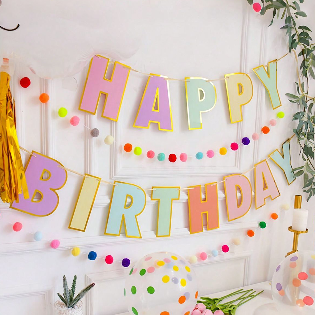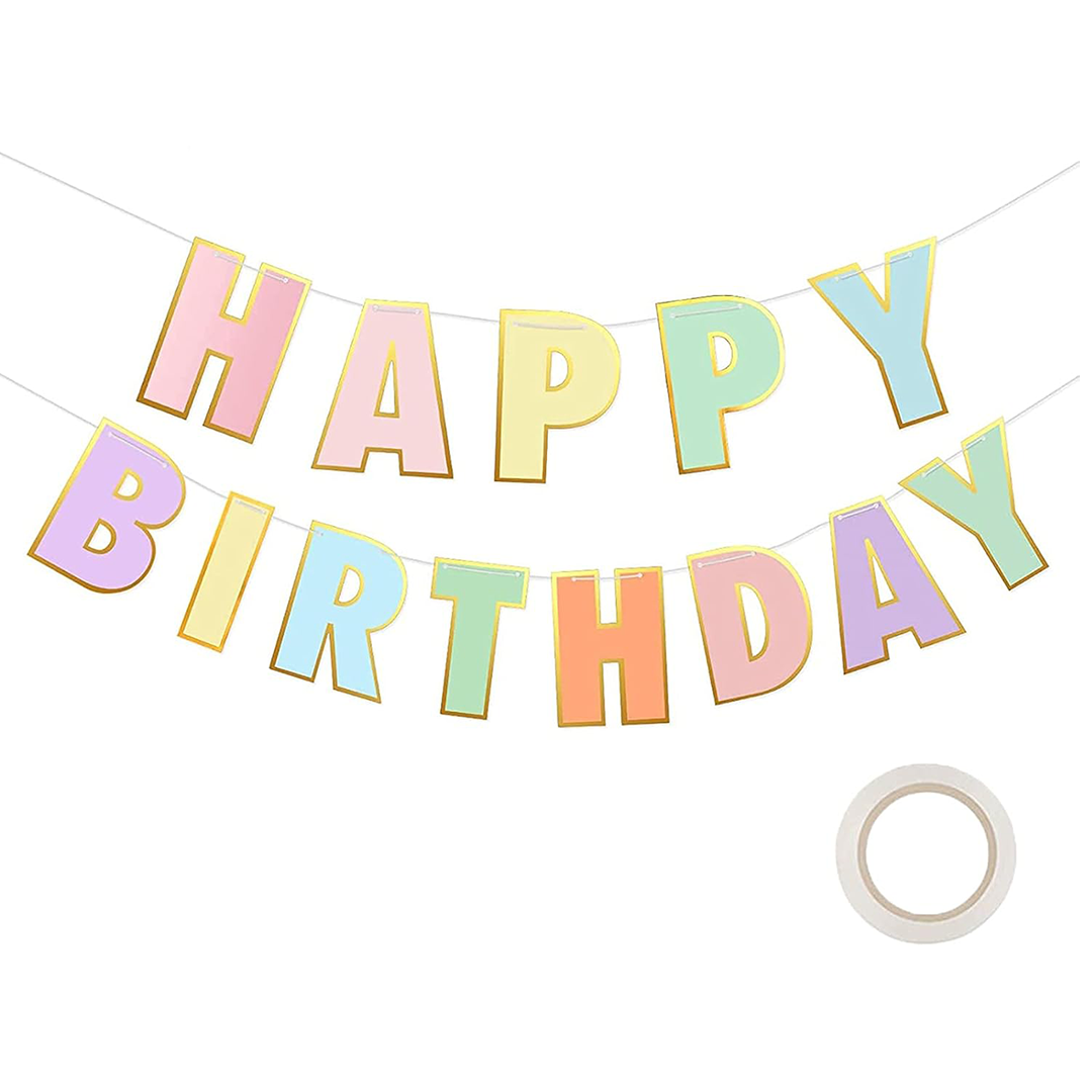 Apportez une touche douce et tendance à votre décoration avec cette guirlande “Happy Birthday” aux couleurs pastel