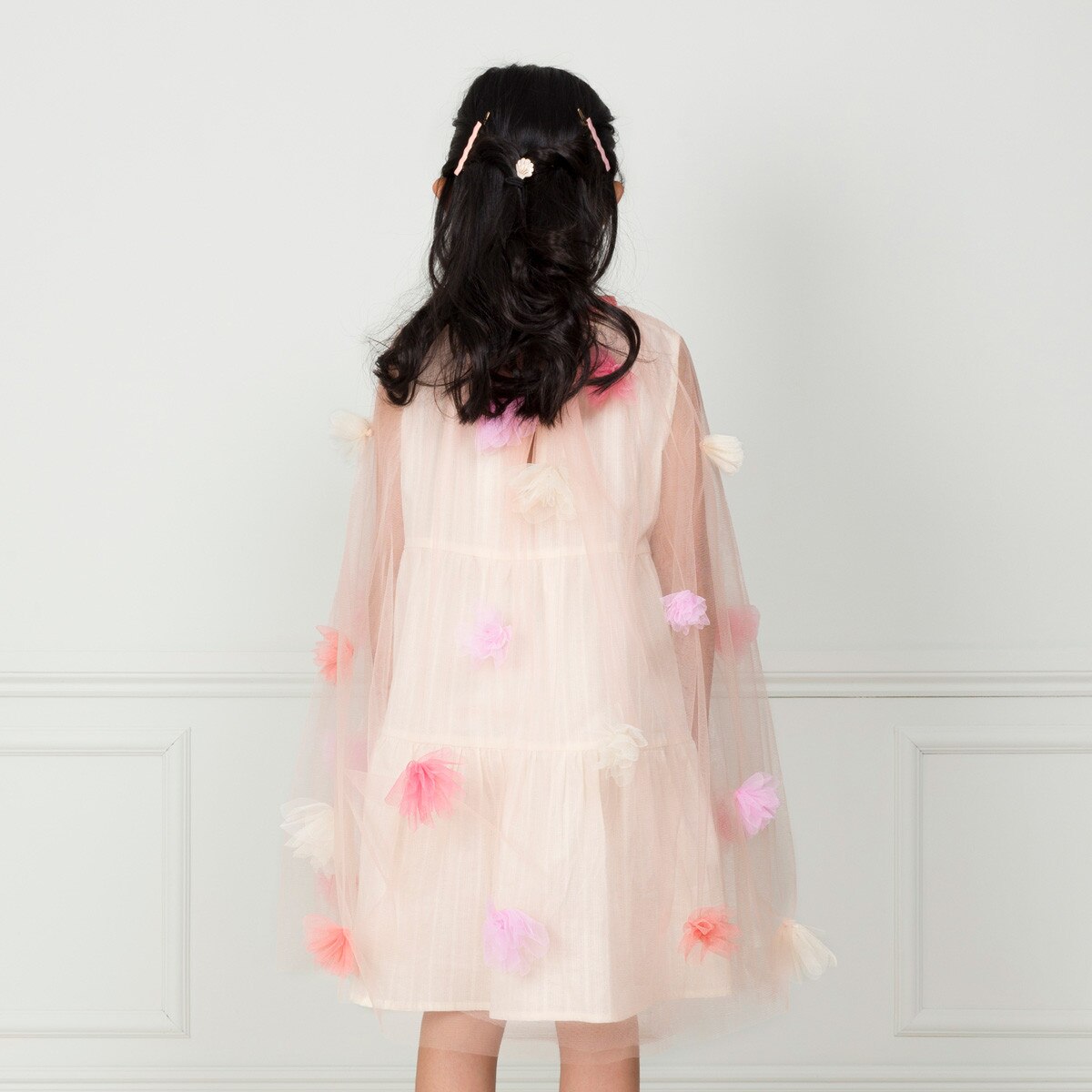 Décorée de fleurs en tulle : rose, pêche, blush et jaune pâle