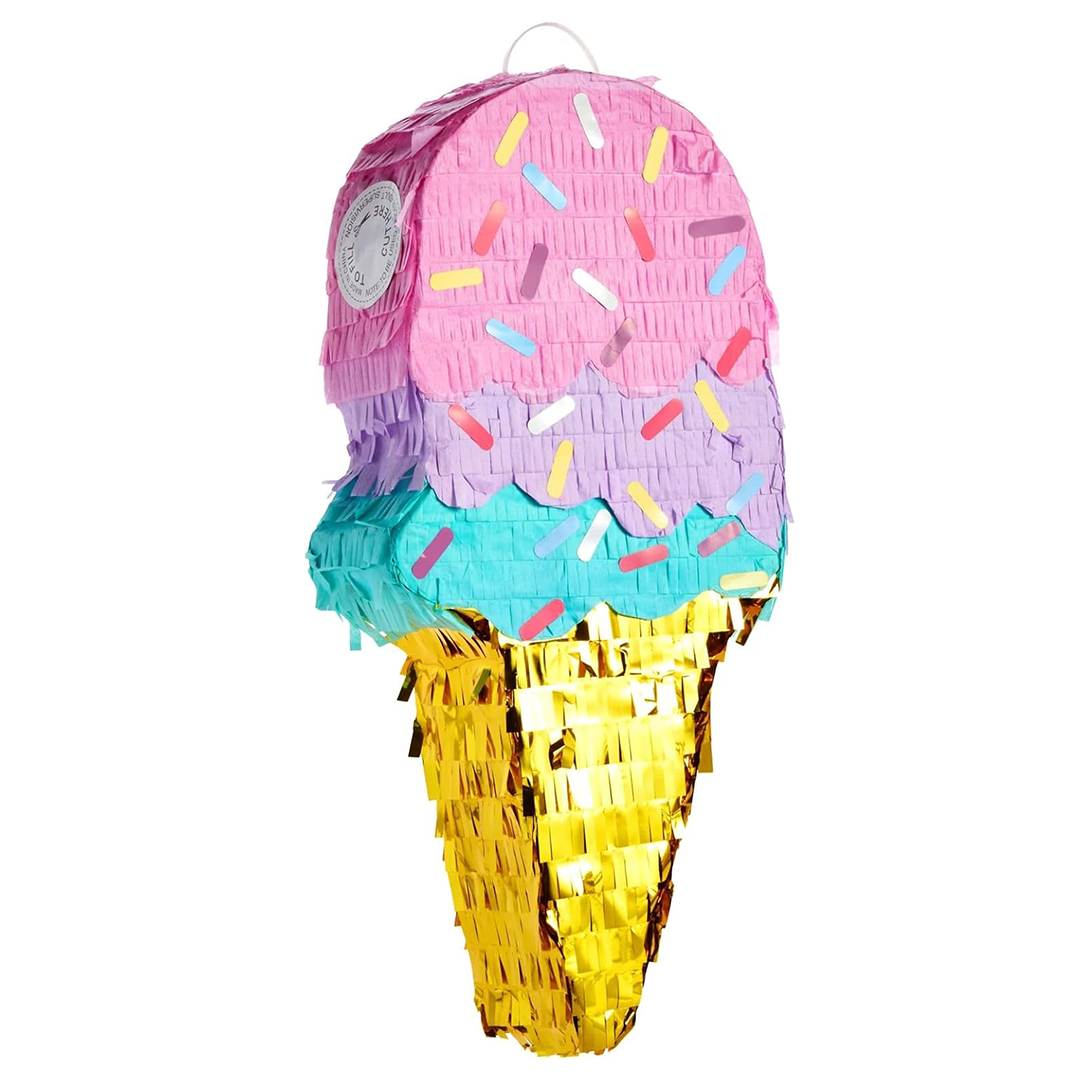 Apportez une touche fun et gourmande à votre fête avec cette pinata en forme de glace colorée ! Parfaite pour un anniversaire ou une fête à thème, elle fera sensation auprès des enfants.