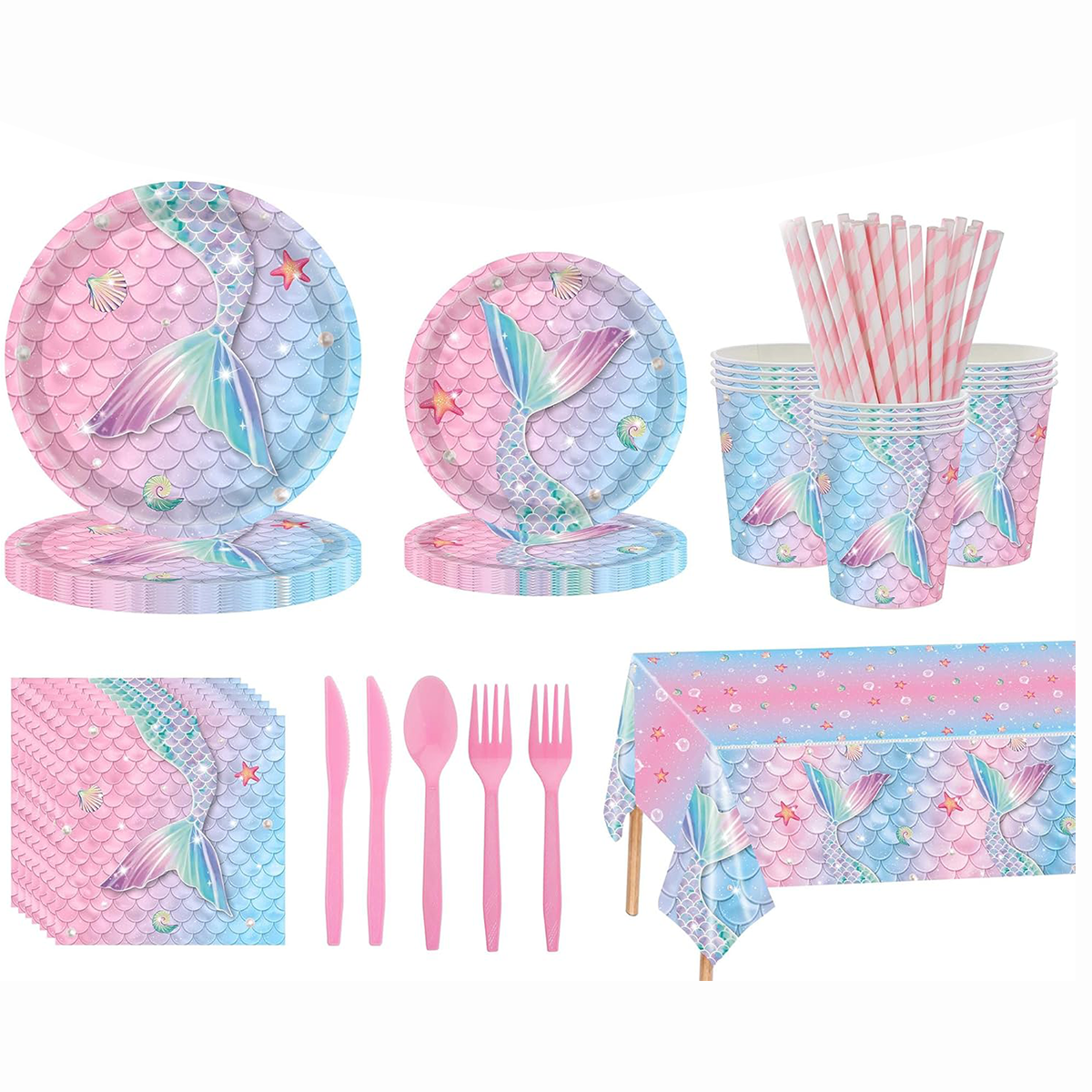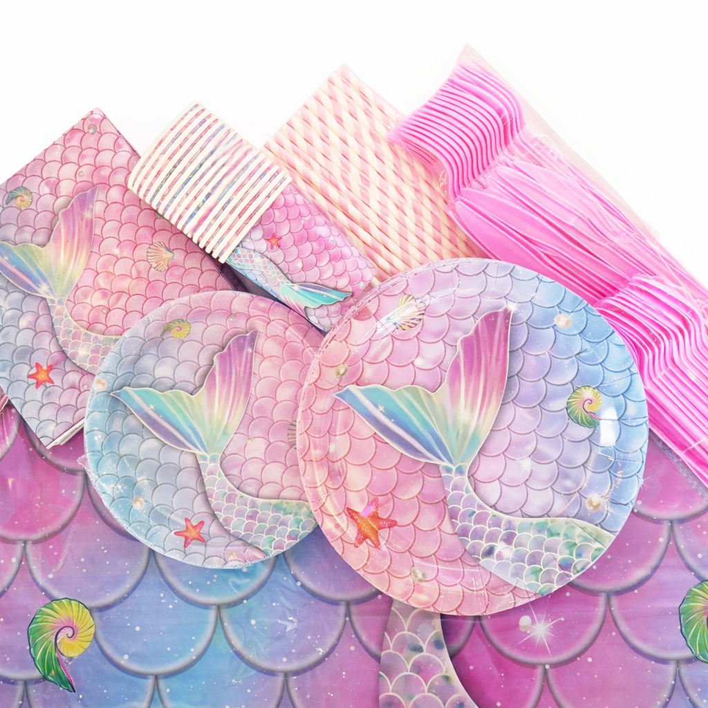 Créez une ambiance magique et féerique avec ce kit vaisselle sirène, parfait pour une fête sous le thème des océans. Le kit est composé de :