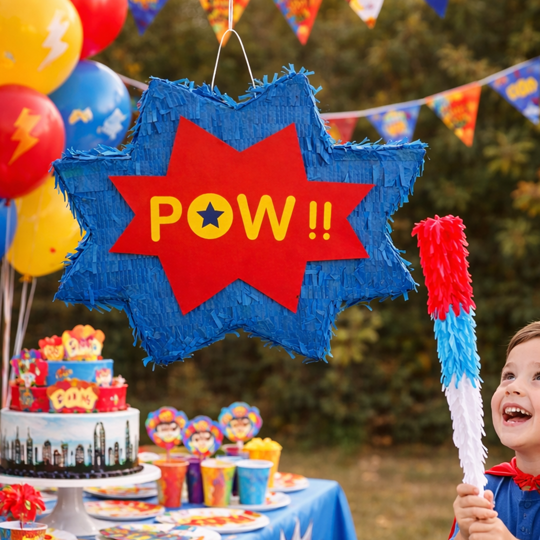 Ajoutez une dose d’action à votre fête avec cette pinata super-héros, parfaite pour un anniversaire plein d’énergie.