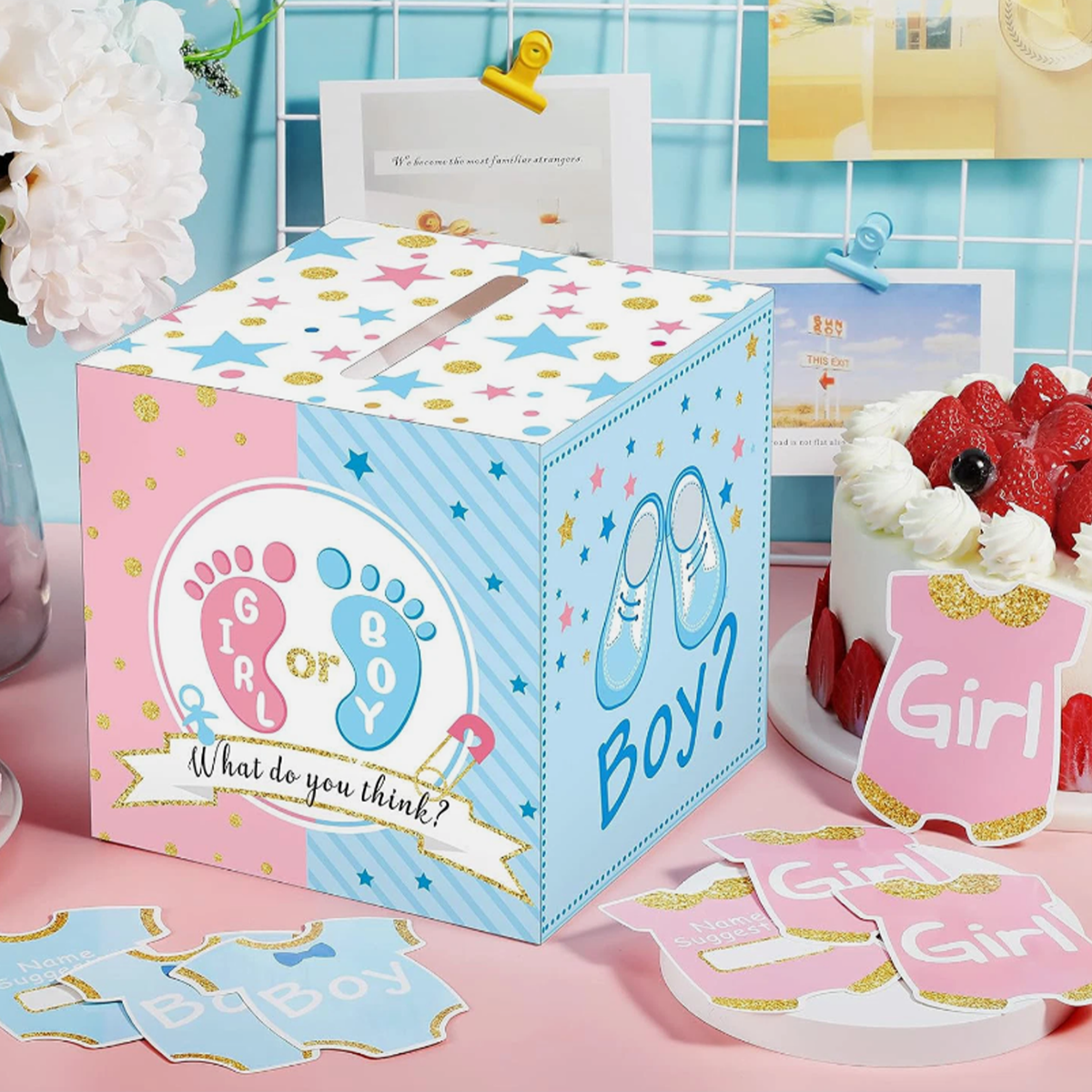 Ajoutez une touche amusante et participative à votre événement avec cette urne gender reveal, parfaite pour faire voter vos invités !